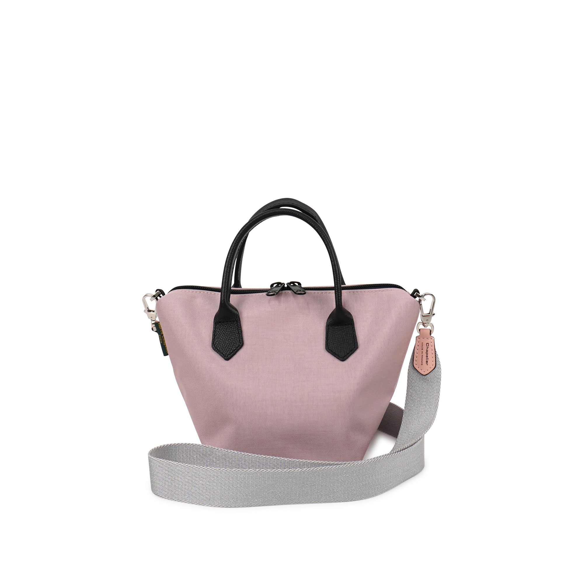 レザーハンドルのミニバッグ。